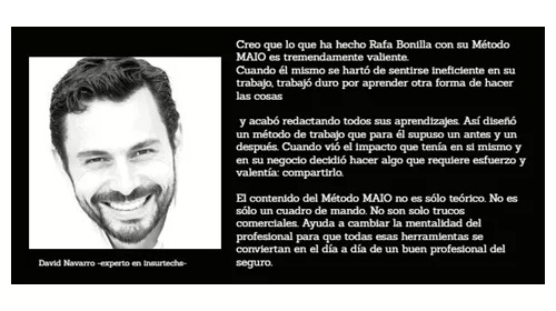 Aumenta de forma RÁPIDA, FIABLE Y CON RESULTADOS, tu ratio de pólizas por cliente con el método Método [SECRETO] MAIO (Mediador All In One), exclusivo para corredores de seguros, correduría de seguros y agentes de seguros, usando la metodología probada y testada durante años por el mentor Rafael Bonilla en su propia correduría y los mediadores de seguros que ya son Mediadores All In One.